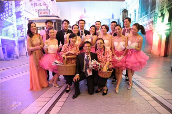 具有浓郁旧上海风情的百乐门歌舞精彩上演,整个晚宴的节目表以“号外”方式制作出来,共分三部分,分别是“缘定冠珠梦”、“情迷上海滩”、“狂欢腾飞年”,其中最重要的部分则是“情迷上海滩”。冠珠陶瓷市场部为这个答谢晚宴做了大量准备工作,落实了老上海演员们的服装、道具、主持人、舞蹈演员、音效、现场布景效果图……为营造出复古的氛围,他们特地找来老上海经典的大号留声机、电话机、摆钟、台灯等老道具;为大部分工作人找来老上海的服装装扮成卖花女、卖报童、迎宾员等。并且对场地的现场搭建都一一精心布置。仅老上海一条街就特地安排了香烟摊、汤圆摊、糖葫芦摊、棉花糖摊等多个摊头;为了做到尽善尽美,还提前进行了彩排,保证了晚宴进行时服务员们有条不紊、一切按计划进行。