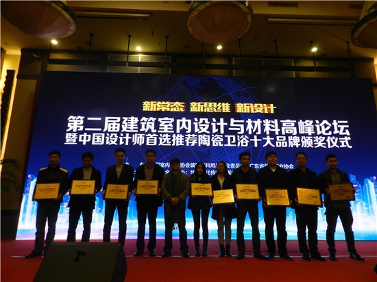 2015年1月12日,由中国室内装饰协会装饰材料用品专用委员会、广东省装饰行业协会联合主办,华夏时传媒承办的第二届建筑室内设计与材料高峰论坛暨中国设计师首选推荐陶瓷卫浴十大品牌颁奖仪式在广州番禺长隆大酒店隆重举行,各路精英们共聚一堂,共同探讨建材与设计行业的新时代。