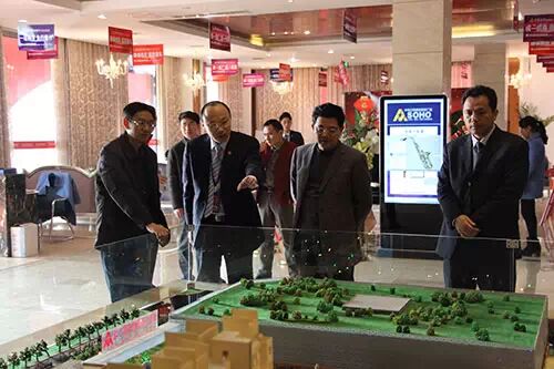副厅长曾绍平等领导来到项目接待中心后,首先详细参观了项目的销售大厅。随后,各领导聚在项目沙盘前,总经理刘敏龙向曾绍平副厅长等详细介绍了华美立家家居建材广场。华美立家抚州项目部作为抚州市重点招商引资项目,项目总体规划结合现状地形特点,合理布局商业旗舰店、住宅建筑、接待中心(含社区管理用房)等建筑。项目用地南临安石大道,西为曾巩大道,四周道路环绕,交通十分便利。地处抚州市城市新区,是未来城市发展的核心位置,极具商业价值。距离市政府1.5公里,毗邻工人文化宫,是政治和文化的核心区域,各领导都对项目地理位置未来的价值做了高度肯定。
