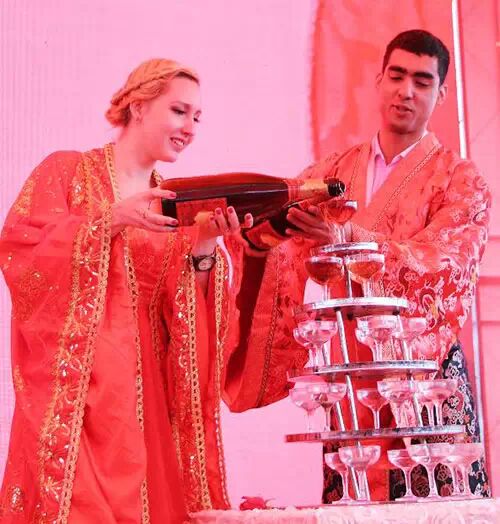 “你是我此生最华美的遇见,在最美好的年华与你相恋,我满怀激越牵着你的手,共赴一场爱的盛宴……”,在音乐声中,所有新人们集体宣誓,共诵“华美之恋”。随后,新人代表上台为香槟塔注入美酒。同时,伴随着“最浪漫的事”歌曲,新人们还与亲友团和现场观众共同分享代表甜蜜的蛋糕,寓意着华美的爱情由其开启,幸福的生活由其创造,在场所有人都沉浸在浪漫的氛围中,衷心地为所有新人们祝福。