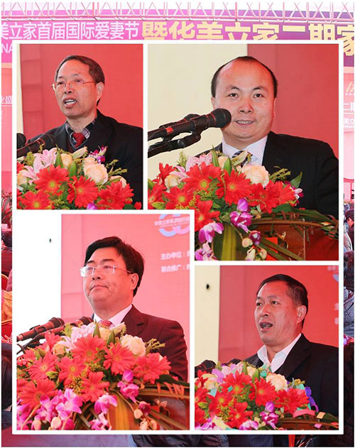 在开业仪式上,吉州区委书记徐明、华美立家总裁贾锋、省家具行业协会会长何炳进分别上台致词,对本次活动的举办表示了热烈的祝贺,并祝参加集体婚礼的新人们永结同心、百年好合。