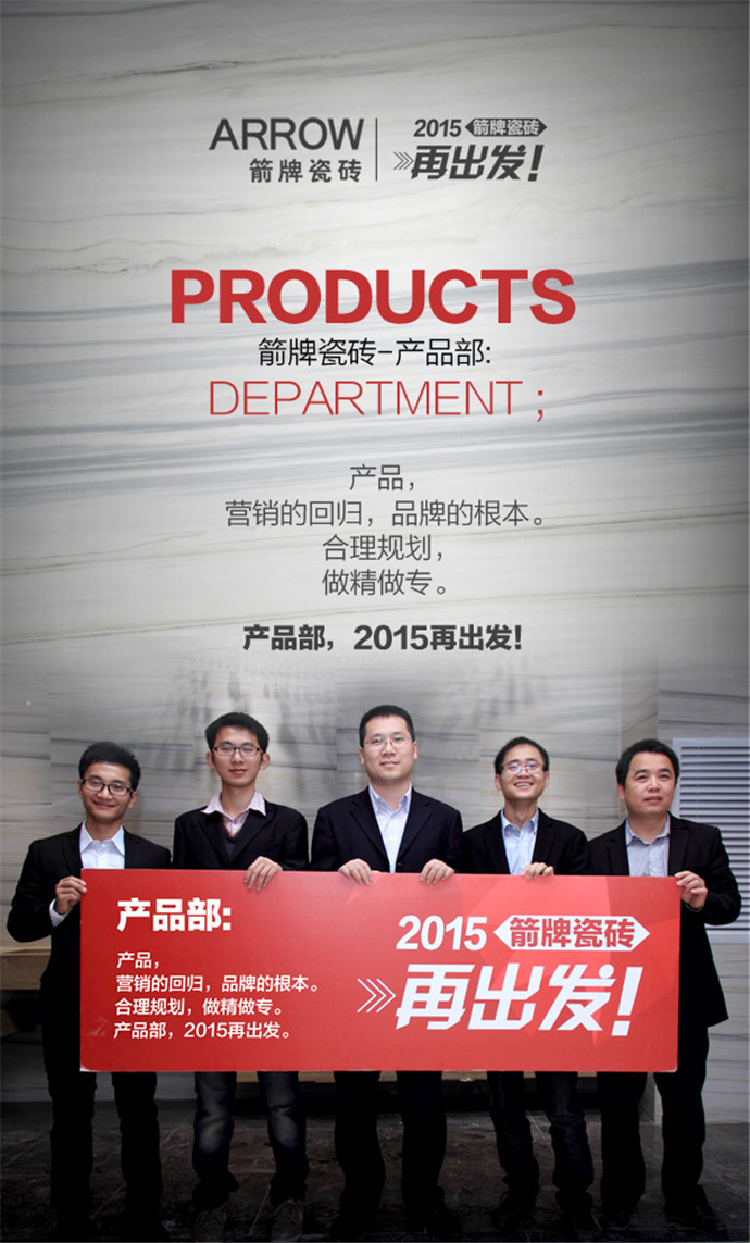 专业、细致、高效、热情,箭牌瓷砖服务部兄弟连与您同甘共苦。服务部,2015再出发!