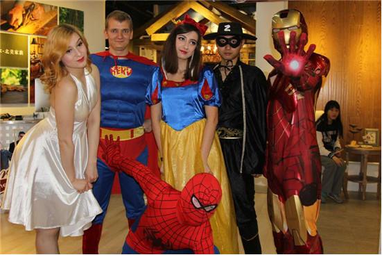 现场还请来了“超人”、“蜘蛛侠”、“玛丽莲梦露”、“白雪公主”等,吸引了众多消费者前来,气氛活跃。(实习编辑:谭婉仪)