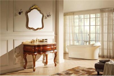 安华卫浴anPGM4333-N实木浴室柜将高雅与复古完美融合,阔大的木纹玉大理石台面轻松解决小物件摆放的烦恼,搭配金色仿古拉手,营造出极致奢华体验。主柜柜内人性化设计方便日常物品取放,最大限度节约空间。