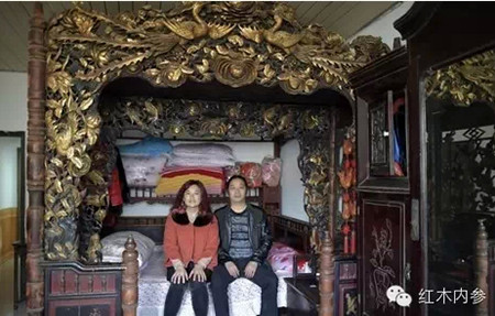2015年3月12日,重庆,林泽六夫妻俩就睡在收藏的二檐六柱镂空雕跋步床上,按照他的说法是,睡古床不容易得病。