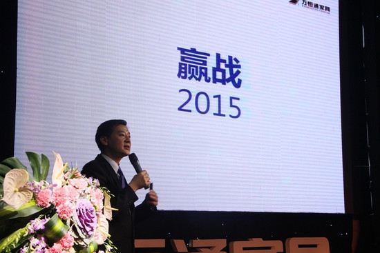 万恒通家具集团营销总监陈玉伟向全国经销商公布喜讯,万恒通家具在2014年完成了销售目标,并取得了较大幅度的增长,同时阐述如何与经销商配合,开展2015年度营销工作,布局“标准年、服务年、品牌年”的总体工作方针。