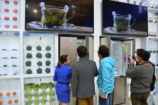 记者在家博会现场看到,一款星厨冰箱最受参观者关注,这款星厨冰箱的多功能存储专区提供了珍品、果蔬、0°保鲜三种功能模式,根据用户不同需求随心切换选择,满足各类食物分类储存的需求。在外观设计方面继承了海尔“星厨”系列超薄风格,可以使厨房整体更加和谐。特有的一键速冻功能,可以在极短时间内将冰箱温度降至26度以下,快速冷冻,锁住肉类营养成分。