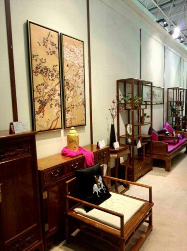 太兴家具馆 太兴家具此次以全新的面貌亮相名家具展,为广大客户朋友呈现从木材上、设计上、细节上、功能上全面升级的红木家具,并为展览会带来了一股时尚新颖的红木文化风。 展会第一天,到太兴家具展馆参观的顾客络绎不绝,纷纷驻足前来了解、询问太兴红木家具推出的新品。