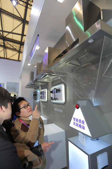 据海尔工作人员介绍,海尔智慧厨房中的每台厨房电器都能实现产品与产品间以及产品与用户间的无缝互联,用户可通过手机远程检测和控制任意厨房电器。更重要的是,吸油烟机上的“智慧眼”能不间断地检测室内空气质量,并能根据厨房油烟的大小,调整风力大小,实现风随烟动。