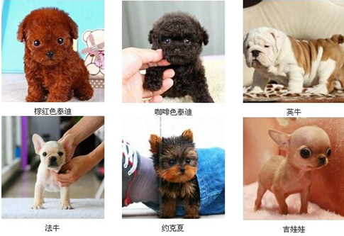 1、小型犬:博美、比熊、泰迪、巴哥、斗牛犬、约克夏、吉娃娃、西高地、雪纳瑞、马尔济斯等