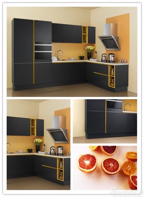SCHMIDT司米橱柜“浪漫系列”之‘贝弗龙’、‘特鲁维尔’橱柜,上白下木纹的搭配,以线条的流畅,辅之纯白的色彩,自然清新。 NO6. 黑与黄的变奏 黑与黄,从来就不是孤立的存在,在冲突与碰撞中诞生的美,仿佛夜与光交错的刹那辉煌,璀璨夺目,象征着个性与智慧。