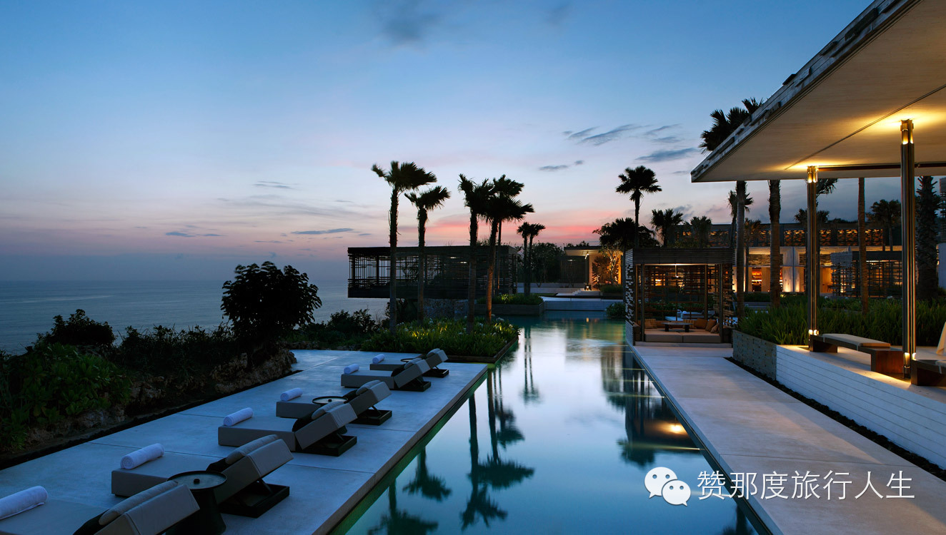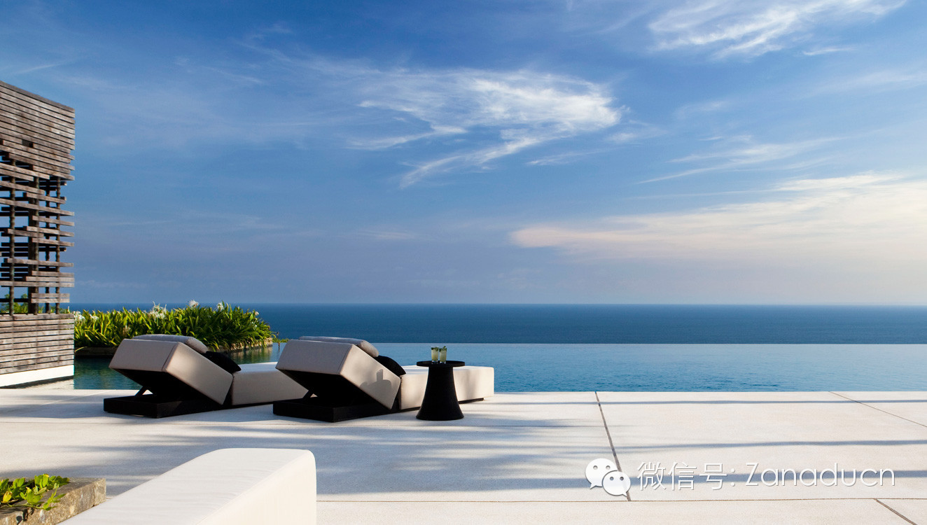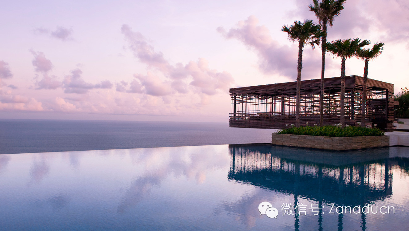 过目不忘的空间设计、生活与自然的百分百交融,坐落在巴厘岛南部的海岸线高大的石灰岩峭壁上并直面美丽的印度洋。那一片在山顶上的灰白色建筑群已经让你感觉到十足的设计感和磅礴的气势。Uluwatu最受瞩目的是仿旧木头做的镂空新概念发呆亭,它悬空而立,气宇轩昂。这里也是浪漫婚礼和蜜月的首选,酒店还曾获得赞那度2014年环球旅行体验大奖“最美婚礼”提名。