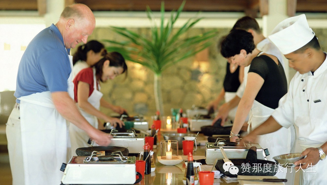 度假村会定期举办美食节,他们的烹饪课也值得推荐。酒店有一个有机花园,位于Mount Agung山脚,可俯瞰大海,烹饪课就在这里展开。到时你将有机会了解当地农作物的种植方法、采摘时令食材,并参加由行政主厨Santika教授的有机烹饪班,然后在巴厘式的凉亭里品尝刚烹制好的菜肴。