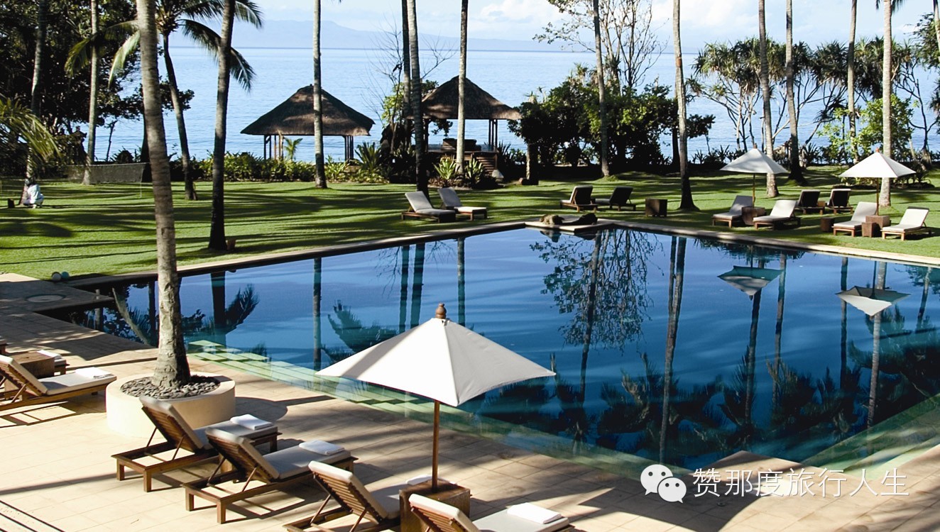Manggis是一个很静谧的小村庄,这里的空气很新鲜,这里的小吃很特别,这里还有一家特别有格调的度假村Alila Manggis在巨大的花园草坪中有几栋典雅带着白色茅草屋顶的建筑,沿着被棕榈树围绕的泳池而建,所有建筑均面向海滩,可以看到完美海景。