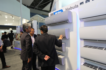 4月15日,第117届广交会在广州召开,海尔展区迎来了众多海外采购商。其中,一位中东采购商在一台海尔空调前展区驻足,“这种挂式空调在我们国家卖的非常好,它的20米超远距离送风正好满足当地的大家庭使用。”这位中东采购商对记者赞叹道。