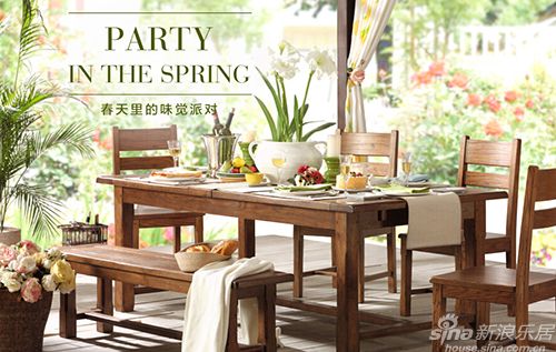 Step 1:家具变身记 巧用更实用 在举办派对时,通常主人并不会为此而再添置家具。因此,在购买餐桌椅时,家具的可变性就十分重要。Lauren餐桌长方形构造简单,木质纹理粗犷,朴实无华的纯手工做旧痕迹依稀可寻,承载了传统美式风格古朴自然的精髓。而其最实用的可拉伸特点,适合日常4人用餐,又可以满足6-12人的聚会需求。与其搭配的Lauren长凳,派对时十分适合作为餐椅,让整体更为随性,平时则可为门廊边凳,置物装饰两不误。
