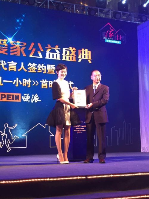 欧派董事长姚良松向著名影星孙俪颁发“爱家达人”证书。 据悉,孙俪在签约成为欧派品牌代言人和爱家大使之后,也将积极投身到欧派“爱家计划”公益行动中去,共同助力中国家庭幸福指数的提升。
