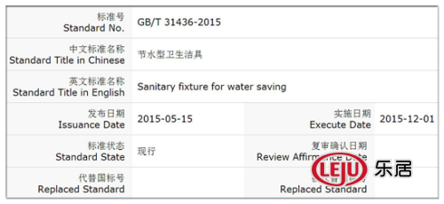 近日,新制定的《节水型卫生洁具》(GB/T 31436-2015)国家标准发布,该标准首次对高效节水卫生洁具给出定义,并明确了高效节水型产品的技术要求和试验方法。标准将于2015年12月1日正式实施。