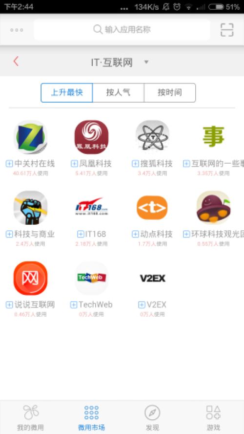 一站式海量应用体验 微用为你开启新生活 微用,以应用聚合的方式一站式提供海量应用体验,内容涵盖财经、资讯、购物、社交、娱乐等方方面面。只要打开微用,最新鲜的热门新闻、最时尚的购物资讯,最好玩的娱乐热点,都能第一时间为你送到眼前。微用以2M体积囊括了整个互联网世界,免去用户在有限的手机内存和不断发展的兴趣爱好之间难以取舍的痛苦挣扎,可谓是为移动终端量身打造。