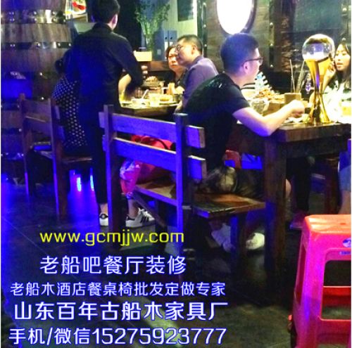 山东百年古船家具厂是一家专业从事老船木家具、老船木茶台、老船木餐桌椅、老船木酒店会所装修、老船木背景墙、老船木饰面板材、老船吧餐桌椅、船动力烧烤酒吧餐桌椅,设计生产于一体的综合型老船木家具厂,百年古船是华北地区首家专业化古船木家具厂,百年古船全部采用纯手工制作,传统卯榫结构,工艺精湛复古。是以优质古船木硬木为原料,纯手工制作是为了不破坏古船木原有的外形,保留了古船木原的残缺美感与自然沧桑感。百年古船设计制作的每件老船木家具都是经过精心挑选,合理设计搭配,确保每一款老船木家具都是不可复制精品,确保每件古船木家具用料均选自同船同类型的木料,确保整体效果大气磅礴自然和谐,百年古船精益求精致力于打造传世精品老船木家具,让每一位客户买的放心,用的舒心; 老船木酒店餐桌椅批发定做专家-山东百年古船木家具厂,山东百年古船木家具厂是一家专业从事古船木酒店装修设计、古船木酒店餐桌椅生产制作的古船木家具厂,百年古船木家具厂是华北地区首家古船木家具厂、山东百年古船木家具厂只做正宗古船木家具,百年古船品牌系列家具全部采用纯手工制作,传统卯榫结构,工艺精湛复古。是以优良古船木硬木作为原材料、原形为基础,在不破坏它原有的外形的基础上加工制作,尽量体现古船木原有的特点与韵味。百年古船品牌老船木家具系列追求艺术的创作过程,把家具生产作为一个很有艺术享受的过程来生产,不仅把原料的作用更好的发挥,而且也特别重视家具的实用性,每款家具都有明确的专用功能。