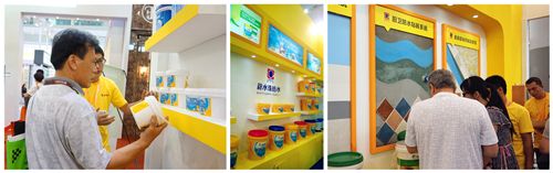 辟水珠负责人粟波现场接受媒体采访 展会期间,嘉宝莉还带来了两款行业内比较独特的产品,第一款产品是全效防水乳胶漆,是防水行业和涂料行业里唯一一款可以做在表面,起到装饰效果的防水涂料,使用此款产品可省去涂乳胶漆的工序。第二款是行业内最小包装的防水涂料,一公斤包装,主要用在裂缝修补,精美有效。同时,还有两款产品是在行业内有差异化效果的,一款是蓝色效果彩色K11,另一款是绿色效果的彩色油性防水。这两款产品,一款是蓝色,一款是绿色,在颜色上能够防止漏刷,区分涂刷效果。“以前的防水都是灰色的,而水泥也是灰色的,那么灰色的防水涂在灰色的水泥上,导致哪里刷了,哪里没刷,看不出来,最终导致漏刷漏水。现在我们的涂料有了颜色以后,就可以防止漏刷。”粟总介绍。
