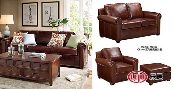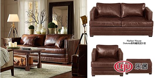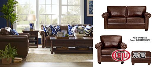 享受居室的高雅休闲 蜡变皮沙发、休闲椅在Harbor House美国设计团队的设计下,兼具美式传统和灵动简约,演绎出高雅自在的休闲风。