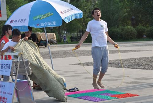 竞技游戏“赤脚行指压板”
