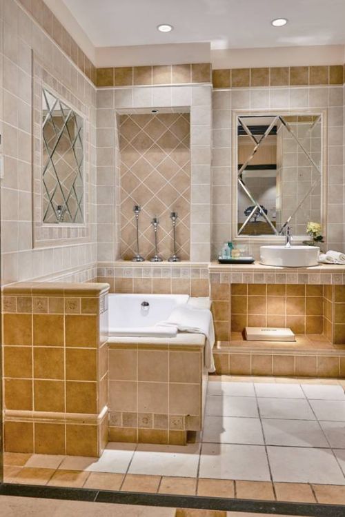 各种颜色的米兰小镇仿古砖,被箭牌瓷砖设计师拼凑成一个浪漫的浴室空间,适合全身心放松。