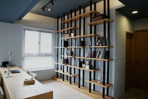设计重点:柜体设计小编点评:开放式空间的书柜也是展示项目之一,利用交错材质串连出支架式结构,表现绝妙的线条美学。