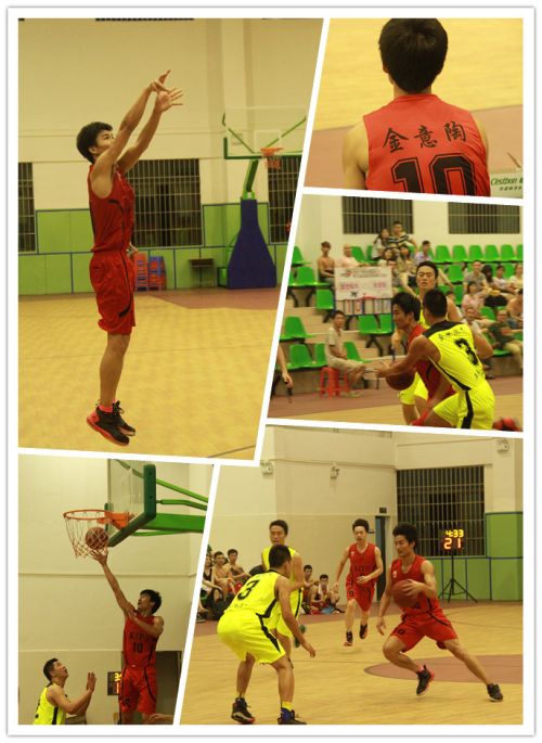 两军对垒,互不相让 最后一节名副其实的生死决战,场上优势逐渐偏向对方,加之强大的啦啦队作声援,金意陶可谓陷入苦战。但见我方13号中锋重新在进攻端装上“弹药”,拼命扎进内线,凭借身高优势及过硬的技术,在内线轻松刷分,远投3分亦能命中,在场效率值高企,命中率高达90%,并以24分创下本场第二高的个人得分。