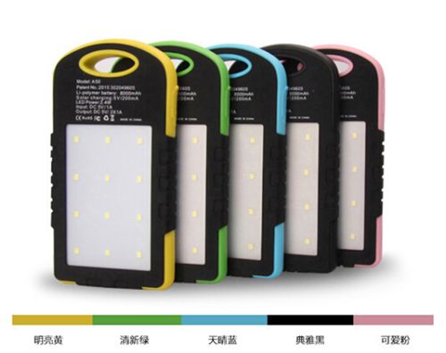 (1)超聚合物A级电芯,支持太阳能+闪电电充 采用超聚合物电芯,聚合物电芯与传统锂离子电池的区别在于生产工艺。锂电池是缠绕而成,体积较软。聚合物是叠加而成,体形较硬。相同体积的聚合物和锂电池,聚合物的容量更大,约高出30%以上,并且安全、稳定、防爆。内置多晶硅太阳能电池板,转化效率高,寿命长。8000mAh大容量,双USB口同时智能快充,最大2A输入,最大3A输出。 (2)防水防尘防摔 具有开放的多孔结构,吸附性强,能吸附多种物质,比普通的移动电源增加一项防水防潮的特殊功效,更可以防止外来灰尘; (3)自带高亮度露营灯 12片高亮LED灯组,消耗能量较同光效的白炽灯减少 80%。移动电源秒变夜行手电,亮度极亮,户外方便实用。 (4)独有SOS信号求救功能 连按开关两次为第一档强光,再一次为第二档强光减弱,再按一次为第三档强闪光灯,此灯可用作SOS急救信号,为您远行、户外运动保驾护航。 (5)五格电量显示模式,随时掌控电量 五格电量显示设计,一格代表20%电量,对电量情况随时把控。 (6)自动无损休眠 不工作状态下,自动休眠,智能锁住电量,享充电更持久。 (7)人性化挂钩户外设计,方便携带; (8)多彩颜色,随你选择;