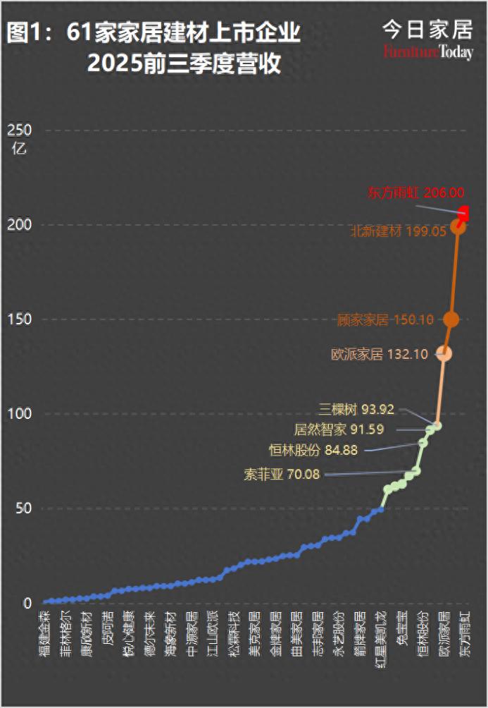 今日家居整理了61家家居建材上市企业2025前三季度财务数据,并挑选了几组数据进行分析。