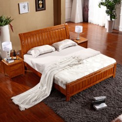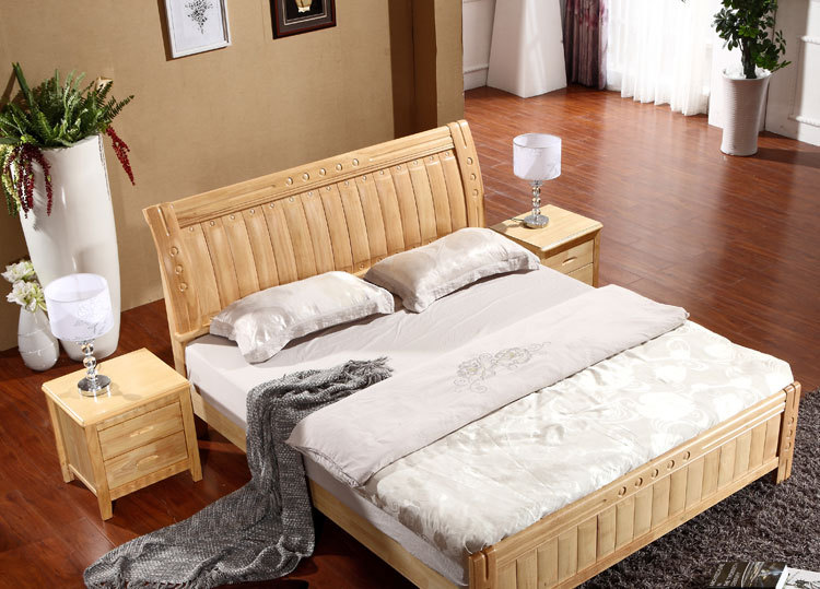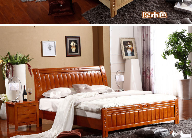 现代双人实木简约床 橡木床 1.5米1.8米实木特价高箱床