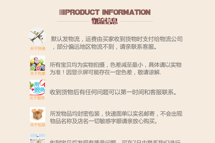 【友情提示】 | 如有产品质量问题请您收到货及时联系我们的客服旺旺也可致电 :13655968627 QQ:723218457我们会第一时间为你解决问题! | ||