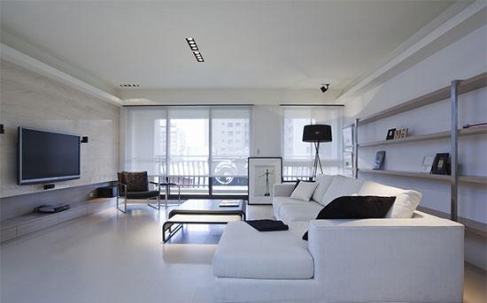 主墙以木化石为主,以仿实木自然纹理,给予白色基底为主的空间适当的温度;将对外介面以开放式的露台与落地玻璃窗界定,成就自在悠闲的居家氛围。