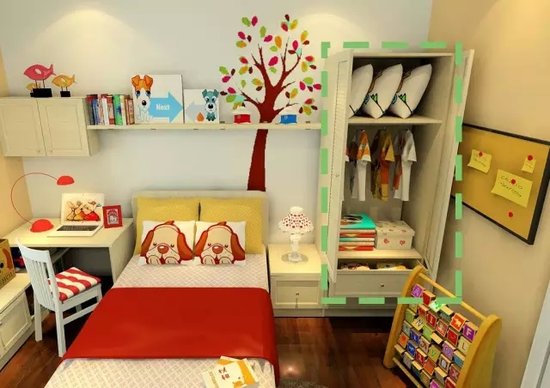 利用墙角的1平方米做一个小衣柜,利用纵向空间将收纳性的功能发挥到极致,既可以放衣物还可以放杂物,完美!