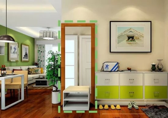 利用入门处的1平方米,把全身镜、卡座、矮鞋柜结合在一起,强大的功能性让你每天整洁出门,做最自信的自己。